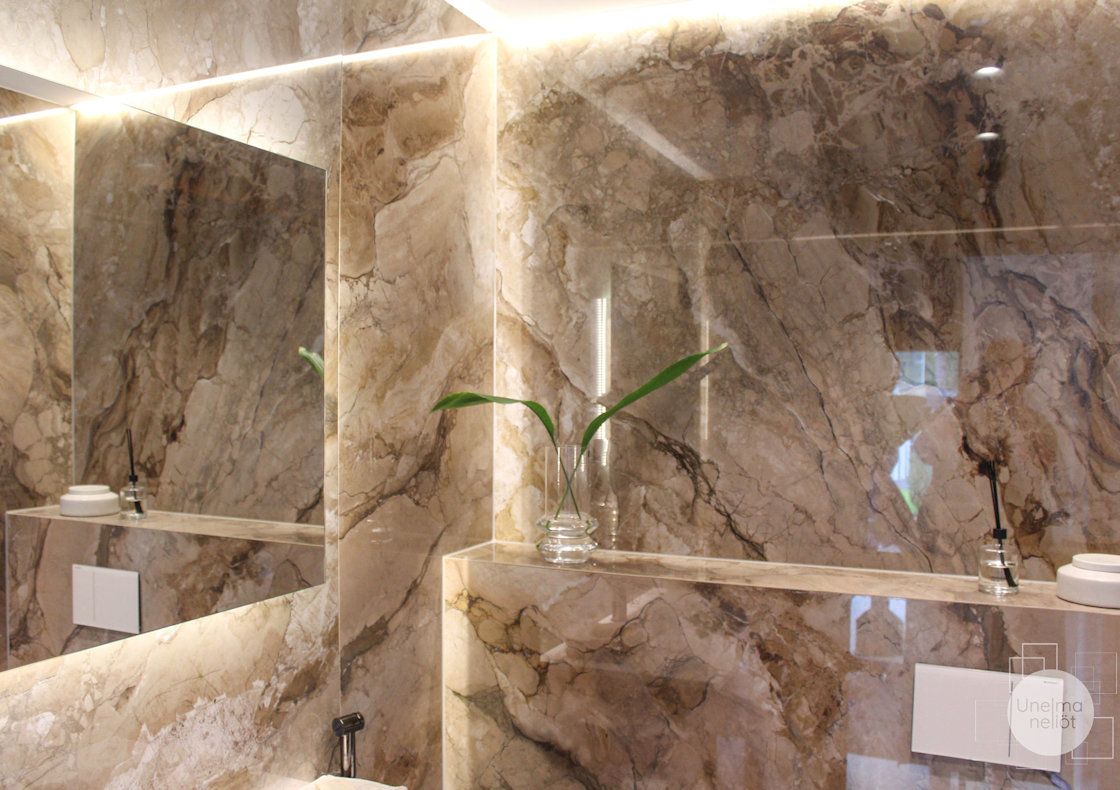 Tykkään Seija Strandin suunnitteluista, niin tästäkin. Tämä ei ole minun tyylinen – eihän kaikkien tietenkään tarvitse ollakaan – mutta täällä on paljon kauniita sävyjä ja upeita laattapintoja. Hieno kohde.
